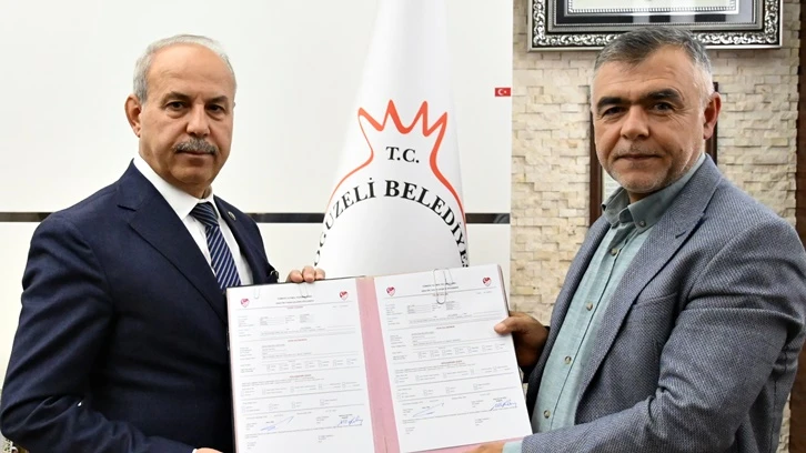 Okan Tere kendini yeşil beyazlı renklere bağlayan imzayı Oğuzeli Belediye Başkanı Mehmet Sait Kılıç’ın makamında attı.