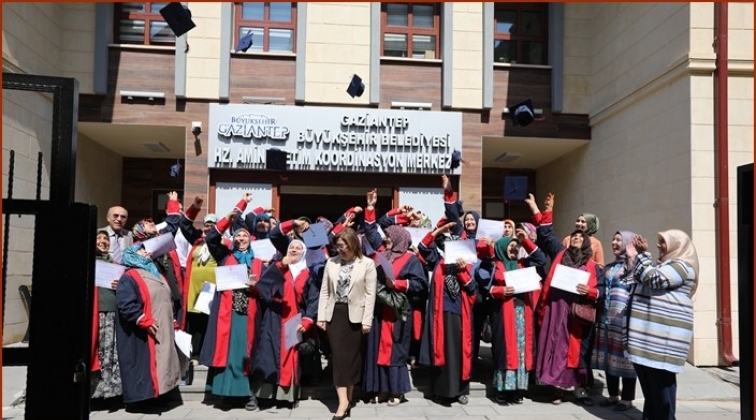 Gaziantep Büyükşehir Belediyesi Hz. Amine Yetim Koordinasyon Merkezi Okuma Yazma Öğretim Kursu’nu başarıyla tamamlayan 30 anne, Büyükşehir Belediye Başkanı Fatma Şahin’in elinden Milli Eğitim Bakanlığı okuryazarlık belgesini aldı.