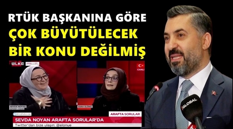 FOX, Halk TV ve Tele 1’e cezalar yağdıran RTÜK'ün Başkanı Ebubekir Şahin, Ülke TV’de komşularına yönelik tehdit savuran ve ölüm listesi hazırladığını söyleyen Sevda Noyan hakkında ilk kez açıklamada bulundu. Dün yapılan üst kurul toplantısına mazeret bildirerek katılmayan ve Şahin, Ülke TV'deki tehditler hakkında "büyütülecek bir konu değil" dedi.