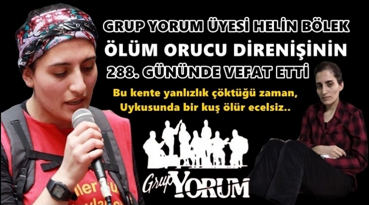 Grup Yorum'a yönelik baskıların sona ermesi talebiyle 213 gün boyunca açlık grevinde olan ve 19 Ocak'tan bu yana ise ölüm orucuna devam eden Grup Yorum üyesi Helin Bölek, ölüm orucunun 288. gününde yaşamını yitirdi.