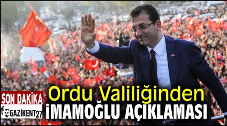 Ordu Valiliği, 5 Haziran Çarşamba günü CHP İstanbul Büyükşehir Belediye Başkan adayı Ekrem İmamoğlu'nun, Ordu-Giresun Havalimanı'nda VIP salonuna alınmamasına ilişkin açıklama yaptı.