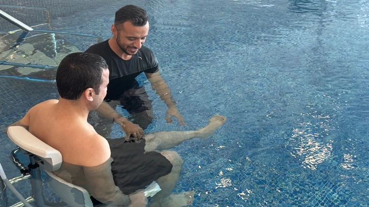 Yaklaşık 1 aydır tedavi gören Recep Kırmızıgül, "Su içinde dizini daha rahat hareket ettirebiliyorsun. Normal spor hareketlerine göre daha rahat hareket edebiliyorum. Su olmayınca daha zor oluyor." diye konuştu.