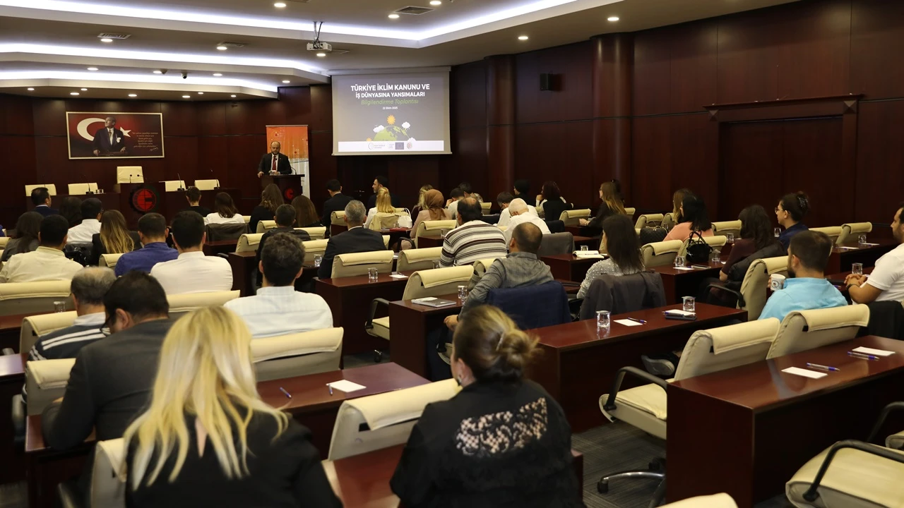 Avrupa İşletmeler Ağı Projesi (EEN) kapsamında gerçekleştirilen toplantıda Türkiye İklim Kanunu'nun iş dünyası üzerindeki yasal, stratejik ve operasyonel etkileri değerlendirilerek işletmelerin bu süreci nasıl yöneteceklerine dair yol haritası oluşturuldu.