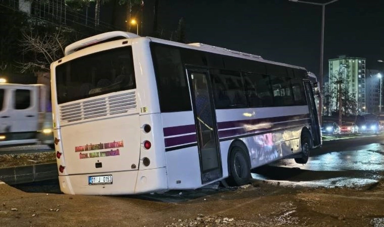 Bulvar kısa süre içinde suyla kaplandı. Bu sırada içindeki yolcularla bulvarda ilerleyen Veli Bala yönetimindeki 01 J 0153 plakalı özel halk otobüsünün sol arka kısmı, yolda oluşan göçüğe düştü.