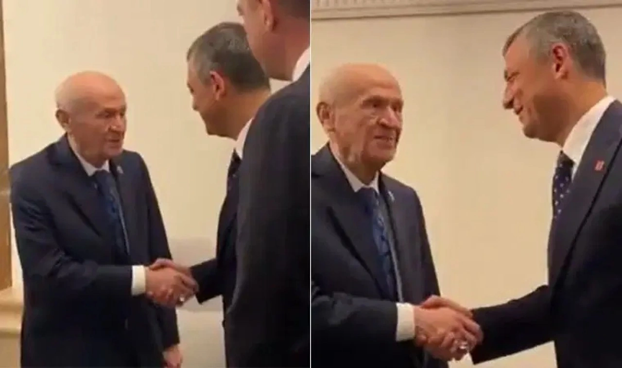 CHP lideri Özgür Özel, TBMM Başkanı seçiminde oy kullanmak için Meclis’e gelen Devlet Bahçeli ile kuliste tokalaştı.