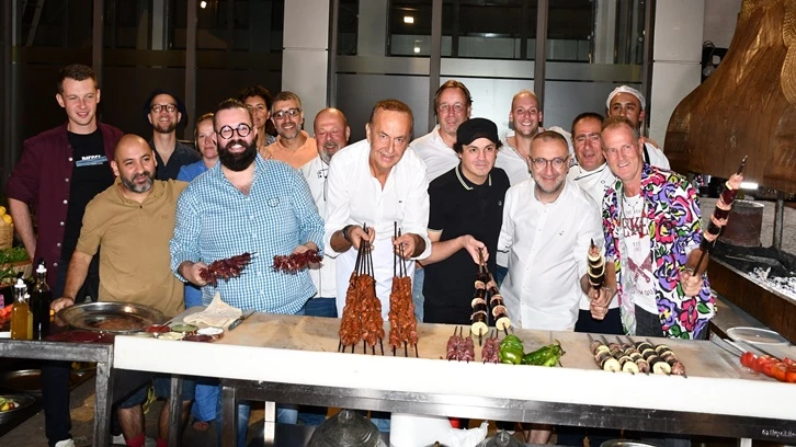 Gaziantepli Ünlü Şef Tahir Tekin Öztan Gastronomi festivali için gelen yabancı şeflere kebap yapmayı öğretti.
