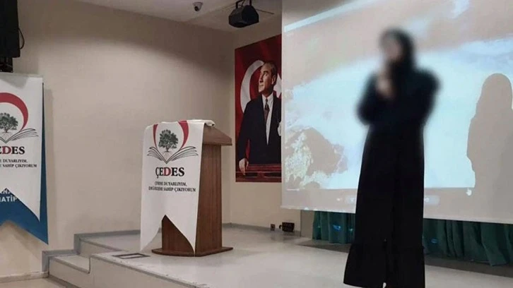 ÇEDES Protokolü kapsamında yapılan etkinliklerin birinde ise sahnede bir kadın konuşma gerçekleştirdi. Etkinlikle ilgili sosyal medyada yapılan paylaşımda, konuşma yapan kadının yüzünün blurlandığı görüldü.
