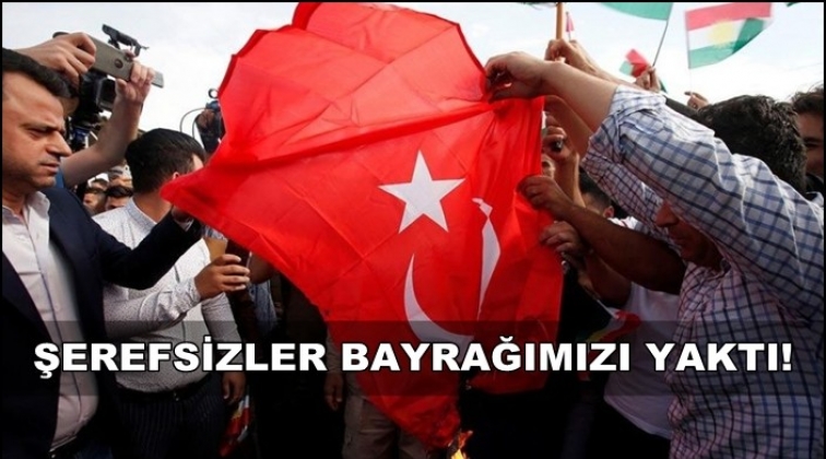 Irak Kürt Bölgesel Yönetimi’nin (IKBY) başkenti Erbil’de toplanan terör örgütü yandaşları, hadlerini fazlasıyla aştı. Sloganlar atarak eylem yapan grup, Türk Bayrağı’nı ateşe vererek skandal görüntülere imza attı.
