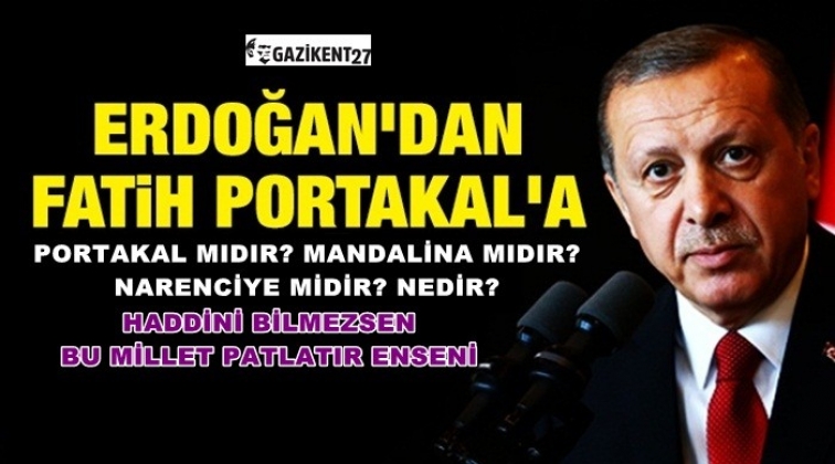 Cumhurbaşkanı Recep Tayyip Erdoğan, gazeteci Fatih Portakal'a, "Birileri çıkmış, portakal mıdır, mandalina mıdır, narenciye midir nedir? Sokağa çağırıyor. Haddini bil haddini bilmezsen haddini bu millet patlatır enseni" dedi.
