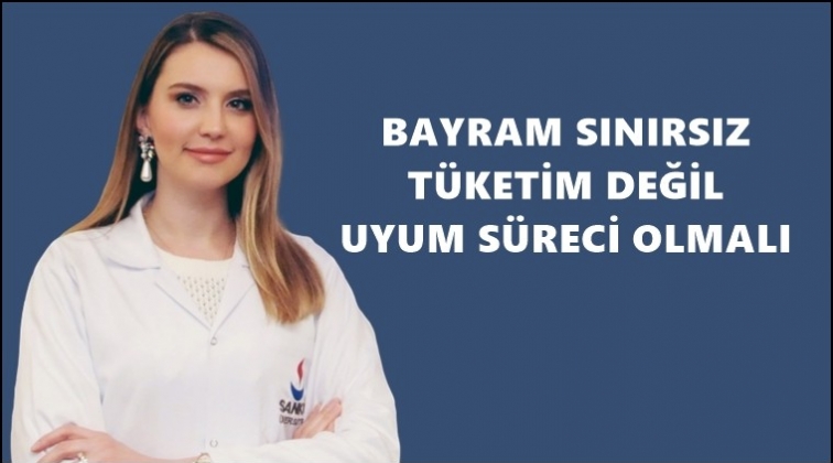 “Beslenme düzeninin değiştiği Ramazan Ayı sonrası bayramın ilk günü eski öğün düzenine geçiş yapılır. Ramazan süresince sahur ve iftarda yaptığımız iki- üç öğünlük beslenme yerine bayramda az ve sık sık yiyerek metabolizmanın eski düzenine dönmesi sağlanabilir. Bu durumda bayramı her istediğimizi yeme zamanı olarak değil uyum süreci olarak düşünmemiz gerekir.