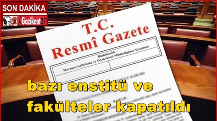 Buna göre, İstanbul Bilim Üniversitesi Rektörlüğüne bağlı Sağlık Yüksekokulu, Adnan Menderes Üniversitesi Rektörlüğüne bağlı Nazilli Uygulamalı Bilimler Yüksekokulu, İstanbul Bilgi Üniversitesi Rektörlüğü bünyesindeki Fen Bilimleri, Sağlık Bilimleri ve Sosyal Bilimler enstitüleri, Akdeniz Üniversitesi Rektörlüğüne bağlı Antalya Sağlık Yüksekokulu ile Çanakkale Onsekiz Mart Üniversitesi Rektörlüğüne bağlı olan Beden Eğitimi ve Spor Yüksekokulu kapatıldı.