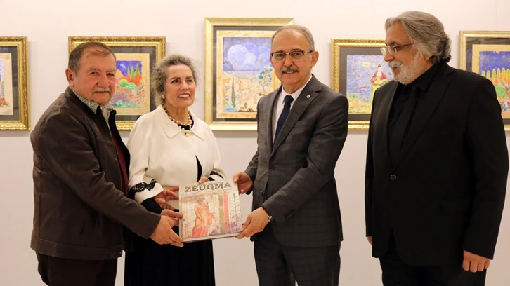 Konuşmaların ardından SANKO Üniversitesi Rektörü Prof. Dr. Güner Dağlı, SANKO Holding’in katkıları ile yayımlanan Zeugma Fırat’ın Gerdanlığı isimli yayını ressam Burhanoğlu’na takdim etti.