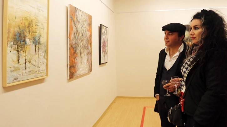 Tuval üzerine karışık tekniklerle yapılan resimlerden oluşan sergide 35 eser yer alıyor.