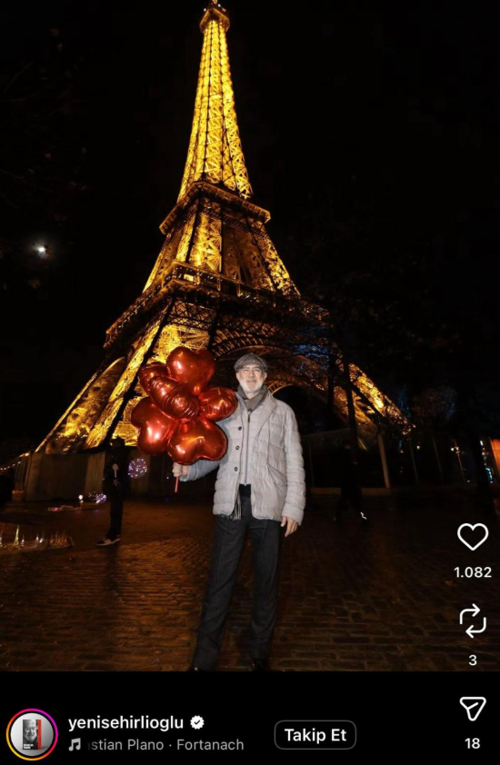 562 bin liralık Rolex saatiyle gündem olan AKP'li Bahadır Yenişehirlioğlu, Fransa gezisinde yine sosyal medyada tepkilerin odağı oldu. Gün boyu cami ziyaretleri yapan ve "Filistin'de mazlumların feryadı" konulu mesajlar paylaşan Yenişehirlioğlu, gece yarısı Eyfel Kulesi önünde elinde kalp balonlarla verdiği poz verdi.