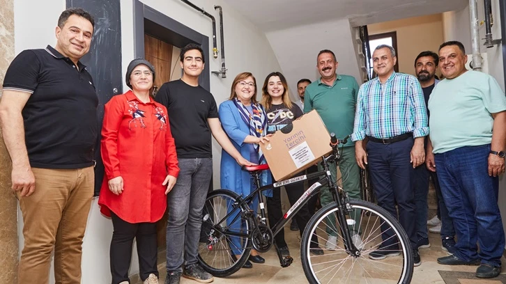 Kahramanmaraş merkezli depremden etkilenen Gaziantep’in İslahiye ilçesinde yaşayan Şişman’a Başkan Şahin, evinde ziyaret ederek bilgisayar ve bisiklet hediye etti.