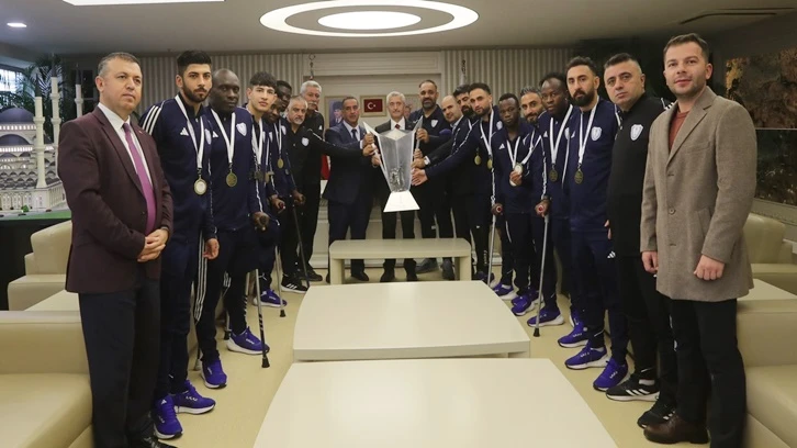 Avrupa Ampute Futbol Şampiyonlar Ligi’nde tüm rakiplerini yenerek Avrupa Ampute Futbol Şampiyonu olan Şahinbey Ampute Futbol Takımı kupayı Onursal Başkan Mehmet Tahmazoğlu’na getirdi.