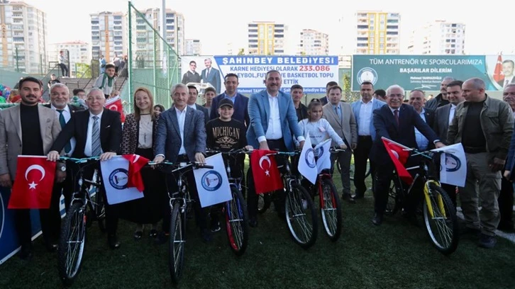 Daha önce öğrencilere 44.000 bisiklet hediye eden Şahinbey Belediye Başkanı Mehmet Tahmazoğlu bu sayıyı 104.000’e çıkararak öğrencilerin yüzünü güldürmeye devam ediyor.