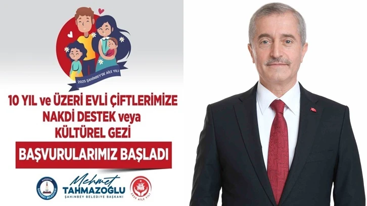 Geçtiğimiz günler içerisinde 10 yıl ve üzeri evli olan çiftlere Şahinbey Belediye Başkanı Mehmet Tahmazoğlu nakdi destek ve kültürel geziler düzenleyeceği müjdesini vermişti. Başkan Tahmazoğlu bu gün sosyal medya hesabından yaptığı açıklama ile başvuruların başladığı müjdesini verdi. Evlilik Okulu ve Hoş Geldin Bebek projelerine ek olarak yeni evlenecek çiftlere 40 Bin TL, çocuk sahibi olan ailelere çocuk bezi ve nakdi destek sağlayan Şahinbey Belediye Başkanı Mehmet Tahmazoğlu 10 yıl ve üzeri evli olan çiftlere nakdi destek ve kültürel geziler düzenleyeceği müjdesini verirken ayrıca hanede yaşayan her bir çocuk için 1.000 TL ek nakdi destek yapacaklarını ifade etti.