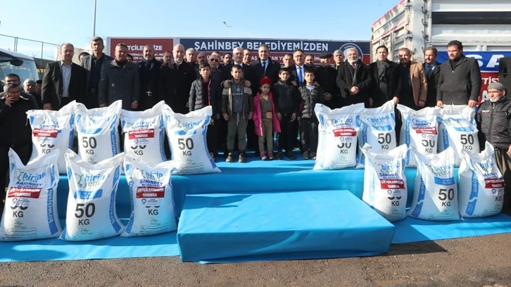 Şahinbey İlçesi’ndeki çiftçilere daha önce; gübre, arpa-buğday tohumu, fide, 750.000 adet zeytin, 150.000 adet fıstık fidanı dağıtımı yapan Şahinbey Belediye Başkanı Mehmet Tahmazoğlu, hayvan yetiştiricilerine 7.000 ton küçükbaş ve büyükbaş hayvan yemi dağıtarak desteklerine devam ediyor.