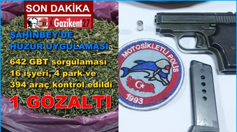 Gaziantep'te Şahinbey İlçe Emniyet Müdürlüğü ekiplerinin yaptığı huzur uygulamasında, bir araçta esrar ve ruhsatsız tabanca ele geçirildi.