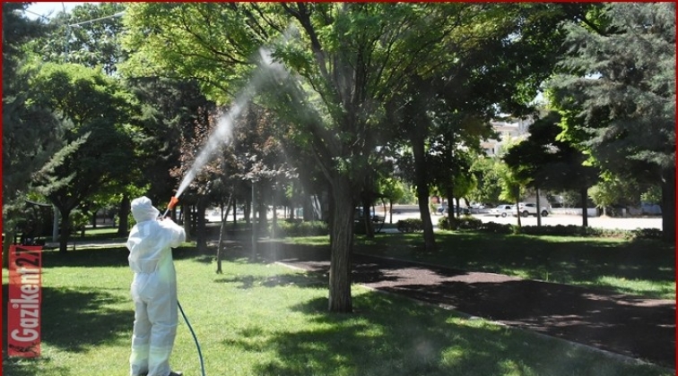 Şahinbey Belediyesi, park ve yeşil alanlarda ilaçlama çalışmalarını sürdürüyor.