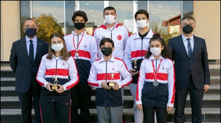 Sporcuların kupa ve madalyalarını Gaziantep Büyükşehir Belediye Başkanı Fatma Şahin takdim etti.