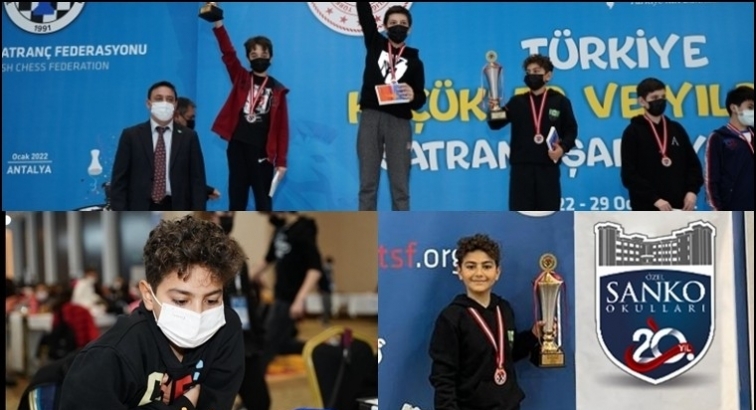 SANKO Okulları öğrencisi Kutay Sakmak, “2022 Türkiye Küçükler ve Yıldızlar Satranç Şampiyonası”nda 13 yaş genel kategorisinde Türkiye üçüncüsü oldu ve Milli Takım havuzuna seçildi.