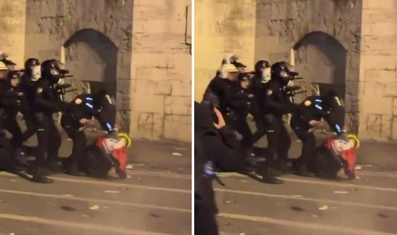 Dün akşam saatlerinde Saraçhane’de polisin eylemcilere müdahalesi sırasında Atatürklü Türk bayrağı taşıyan bir yurttaşa uçan tekme attığı görüntüler sosyal medyada yayıldı.