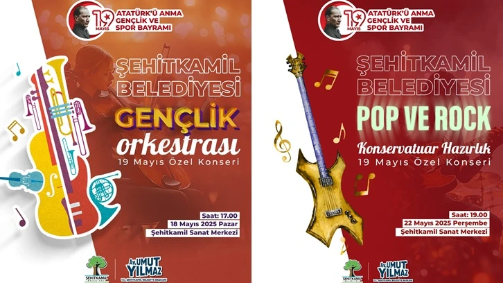 Gençlerle birlikte Şehitkamil halkı 19 Mayıs coşkusunu konserlerle de sürdürecek. Şehitkamil Belediyesi Gençlik Orkestrası tarafından 18 Mayıs 2025 Pazar günü Şehitkamil Sanat Merkezi’nde 19 Mayıs Özel Konseri ile katılımcılar gönüllerinde eğlenecek. 22 Mayıs 2025 Perşembe Günü ise Şehitkamil Sanat Merkezi’nde Pop ve Rock konseri düzenlenecek.