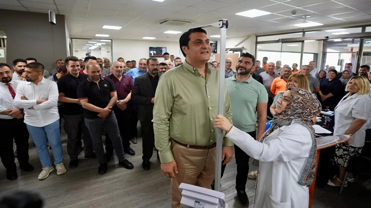 Tarama programına katılan Başkan Umut Yılmaz da boy ve kilosunu ölçtürdü. Sağlıklı yaşamın tercih değil, zorunluluk olduğunu vurgulayan Yılmaz, “Sağlık, hayatımızın en temel değeri. Ne kadar meşgul olursak olalım, bedenimize iyi bakmak zorundayız. Bugün burada yapılan bu küçük ama anlamlı kontrol bile farkındalık yaratmak açısından çok önemli. Hepimiz yoğun bir tempoda çalışıyoruz, bazen kendimizi ihmal edebiliyoruz. Bu tür uygulamalar sayesinde hem kendi sağlığımızla yüzleşiyoruz hem de yaşam kalitemizi artırmak için harekete geçme fırsatı buluyoruz. Herkesi düzenli sağlık kontrolleri yaptırmaya, sağlıklı beslenmeye ve spor yapmaya davet ediyorum” dedi.