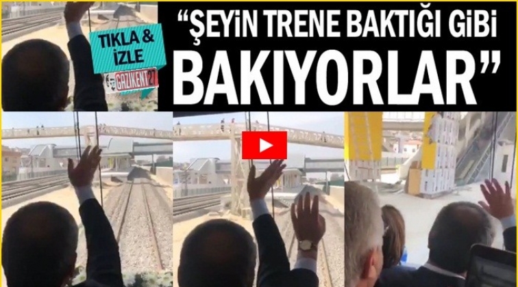 Gaziray Banliyo Hattı Projesi test sürüşünde ilginç anlar yaşandı. Trenin sürüldüğü sırada çevredeki vatandaşlara el sallayan AKP’li heyetten bir kişi karşılık alamayınca “Şeyin trene baktığı gibi bakıyorlar” ifadelerini kullandı.