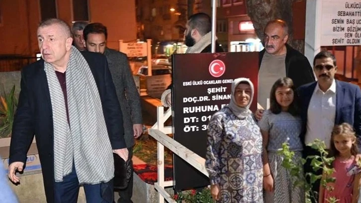 "Rahmetli Sinan Ateş’in Bursa’da baba ocağını ziyaret ettim. Annesine, babasına ve eşine başsağlığı dileklerimizi ifade ettim" diyen Ümit Özdağ, Sinan Ateş'in eşi Ayşe Ateş'in kendisine "Sinan’ı şehit edenler beni öldürmediklerine pişman olacaklar" dediğini aktardı.