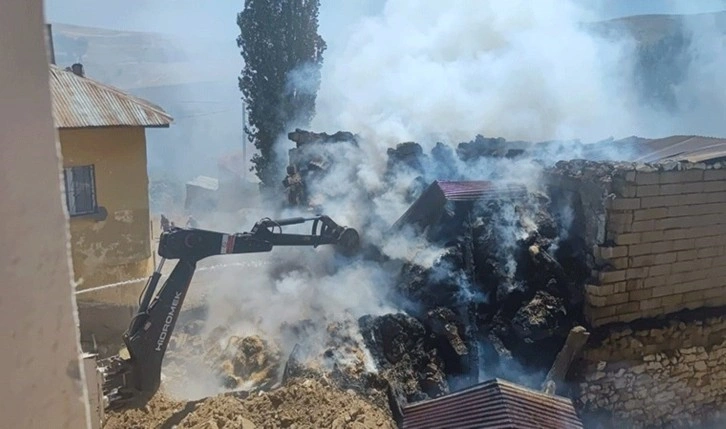Köyde yaşayan Sinan Özdemir'e (47) ait ahır ve samanlık olarak kullanılan 2 katlı taş binada bilinmeyen nedenle çıkan yangını görenler, 112 Acil Çağrı Merkezi'ni aradı.