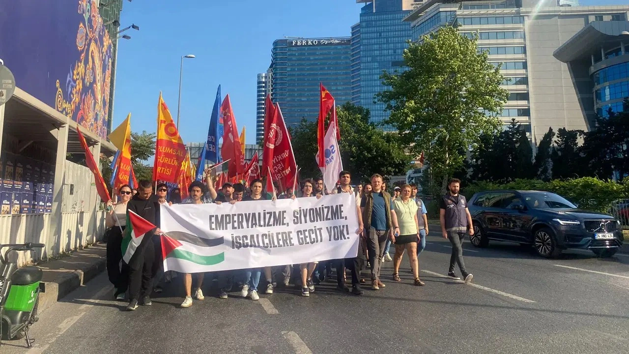 İsrail’in İran’a saldırılarını protesto eden grup İsrail Konsolosluğu’na yürüdü.
