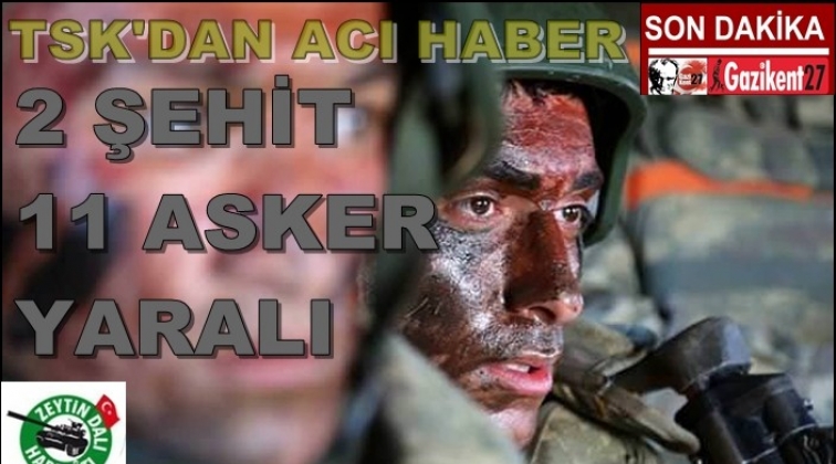 TSK'nın Afrin'de süren Zeytin Dalı Harekatı'ndan akşam saatlerinde acı bir haber geldi. TSK’nın yaptığı son dakika açıklamasına göre Afrin’e gerçekleştirilen Zeytin Dalı Hârekatında 2 askerin şehit olduğu 11 askerin de yaralandığı bildirildi.