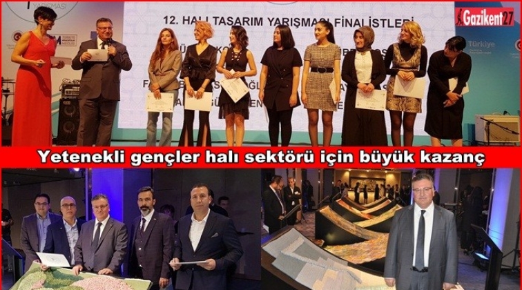 İstanbul Halı İhracatçıları Birliği tarafından düzenlenen 12. Halı Tasarım Yarışmasının ödül töreni renkli görüntülere sahne oldu. Finale kalan 8 eserin değerlendirmesinde jüri üyeleri arasında yer alan Gaziantepli halıcılar finalist 8 halı tasarımını oyladı. Türkiye İhracatçı Meclisi Başkanı İsmail Gülle ve TİM Halı Sektör Kurulu Başkanı Salahattin Kaplan’ın da katıldığı ödül töreninde dereceye giren yarışmacılar ödüllendirildi. Bu yıl 12.si düzenlenen yarışmada birinciliği Büşra Akçay, ikinciliği Ece Yüksel ve üçüncülüğü Fatma Büyüksofuoğlu kazandı. Finale kalan eserler büyük ilgi görürken TİM Başkanı İsmail Gülle törende yaptığı konuşmasında halı ihracatının önemine değinerek gençlerin dinazmini ve yaratıcılığını sektörlerin içerisine çekerek, onların tasarım kabiliyetini arttırmanın sektöre önemli sinerji kazandıracağını ifade etti. İstanbul Halı İhracatçıları Birliği Başkanı Uğur Uysal ve yönetim kurulunu da kutlayan TİM Başkanı İsmail Gülle gerçekleştirilen yarışmanın olgunlaştığını ve genç insan iş gücünün sektöre kazandırılmasının büyük önem taşıdığını ifade etti.