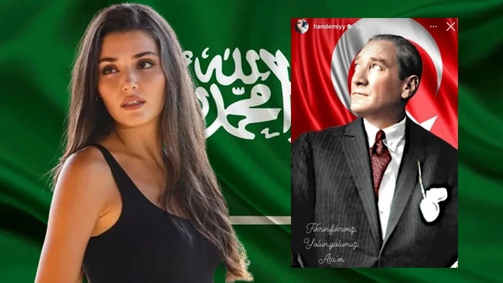 Suudi Arabistan’ın bu tavrı Türkiye kamuoyundan büyük tepki çekerken, tepki gösterenlerden biri de Hande Erçel’di. Yaşananların ardından Atatürk fotoğrafı paylaşan Erçel, “Fikrin fikrimiz, yolun yolumuz Atam” notunu düştü.