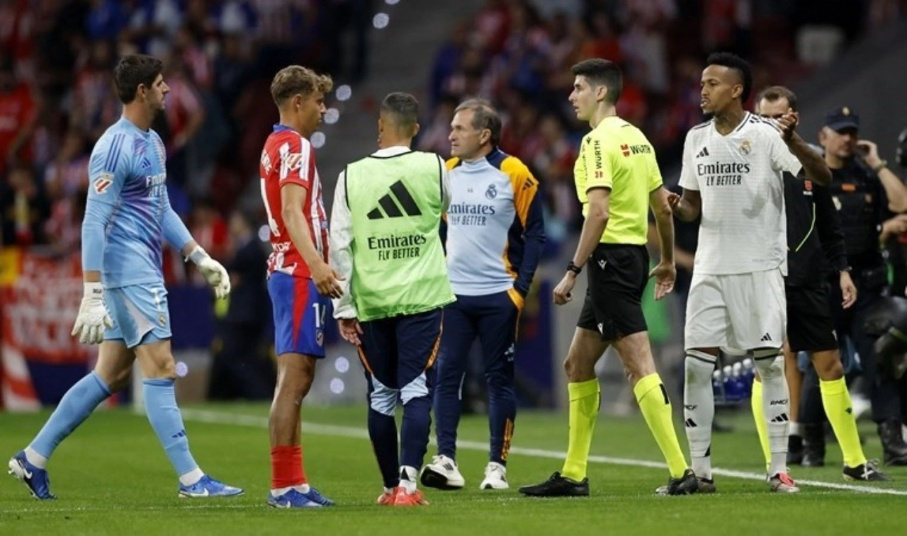 Atletico Madrid oyuncuları tribünlere gidip taraftarları sakinleştirmeye çalıştı. Stadyumda yapılan 2 anonsun ardından hakem takımları soyunma odasına gönderdi.