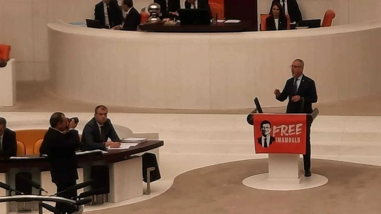 Önerinin gerekçesini açıklamak üzere kürsüye çıkan CHP Muğla Milletvekili Cumhur Uzun, 'Free İmamoğlu' pankartını kürsüye astı. Uzun, konuşmasında şunları söyledi: