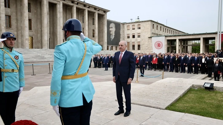 Törende, TBMM Başkanı Numan Kurtulmuş Atatürk Anıtı'na kırmızı ve beyaz karanfillerden oluşan çelenk bırakmasının ardından saygı duruşunda bulunuldu, İstiklal Marşı okundu.