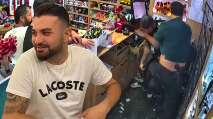 Yeşil tişörtlü saldırganın bayi çalışanının omzunu sıkmasının ardından arbede başlıyor. Yeşil tişörtlü saldırgan, kasa duran işyeri çalışanını sıkıştırıp tehdit ederek dövüyor. Araya diğer saldırganlar giriyor, çalışanın kafasında şişeler kırarak işkence ediyor.