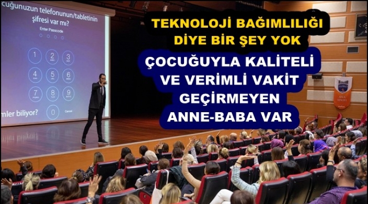 Teknoloji bağımlılığı diye bir şeyin olmadığını, çocuğuyla kaliteli ve verimli vakit geçirmeyen anne-babanın olduğunu belirten Doç. Dr. Samur, “Çocuğuyla aynı dili konuşmak isteyen ebeveynler teknoloji dilini öğrenerek çocuklarıyla sohbet dili oluşturmalı. Hiçbir çocuk gösteremezsiniz ki, anne-babası oyun oynarken kendisi tabletle oynasın veya Tv izlesin” ifadelerini kullandı.