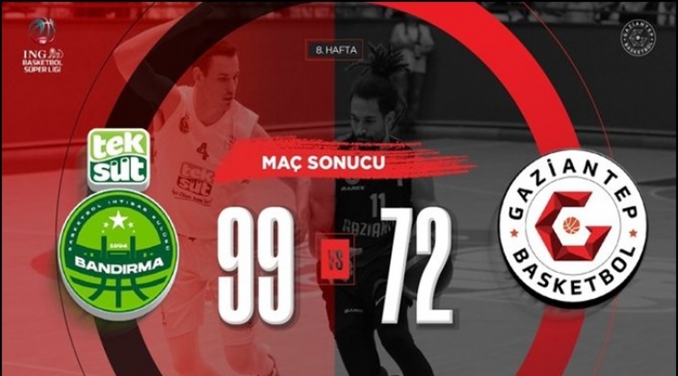 ING Basketbol Süper Ligi'nin 8'inci haftasında TEKSÜT Bandırma BK, evinde Gaziantep Basketbol'u 99-72 mağlup etti.