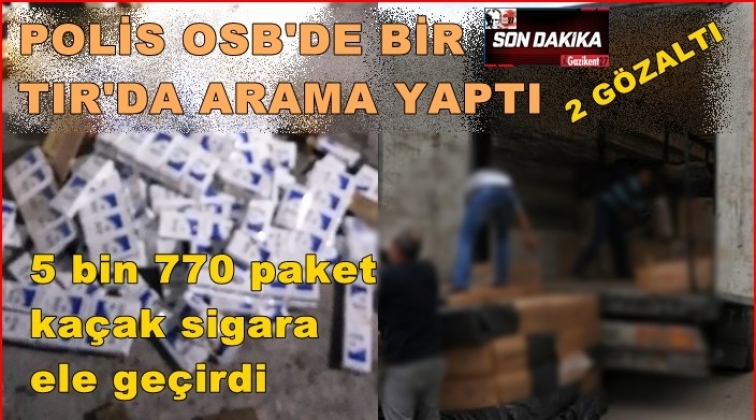 Gaziantep'te Organize Sanayi Bölgesindeki bir iş yerinde bulunan TIR'da yapılan aramada 5 bin 770 paket gümrük kaçağı sigara ele geçirildi.