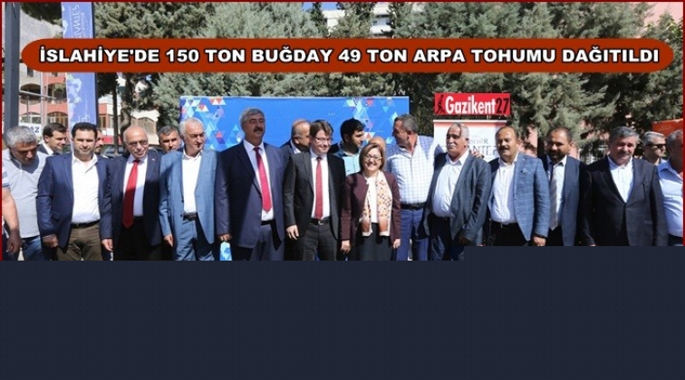Konuşmaların ardından çiftçi temsicileri adına İslahiye Ziraat Odası Başkanı Mehmet Köse tarafından Başkan Şahin’e bir plaket takdim edildi. Daha sonra hazırda bulunan çiftçilere arpa ve buğday tohumlarının dağıtımı yapıldı.