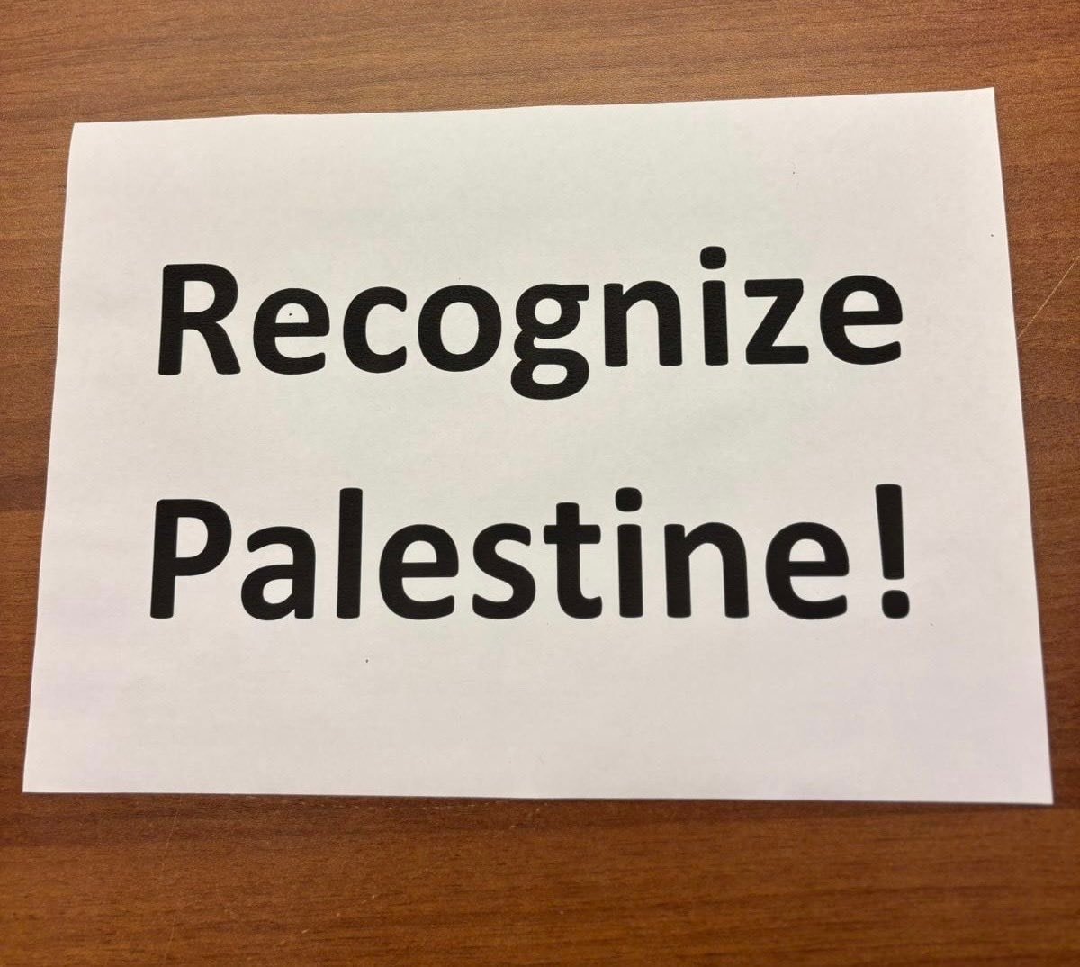 Hadaş-Ta'al partisi milletvekili Ayman Odeh, Trump'a doğru kağıda yazılmış bir not tuttu. Kağıtta ise 'Filistin'i tanı' yazıyordu.