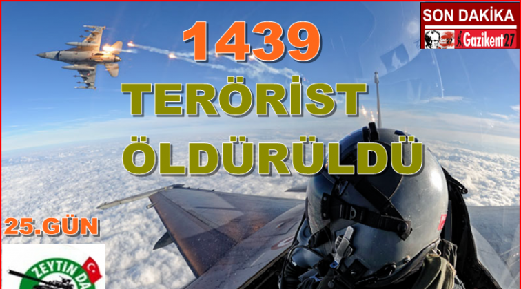 Zeytin Dalı Operasyonu'nun 25'inci gününde etkisiz hale getirilen terörist sayısı 1439 olarak açıklandı.