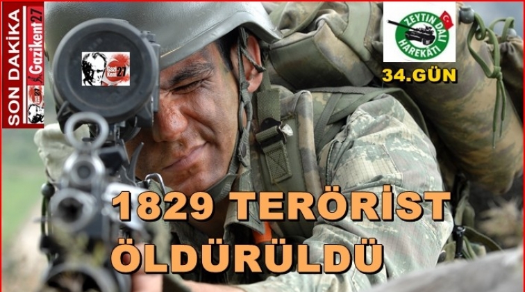 Zeytin Dalı Harekatı’nda etkisiz hale getirilen terörist sayısı 1829 oldu.