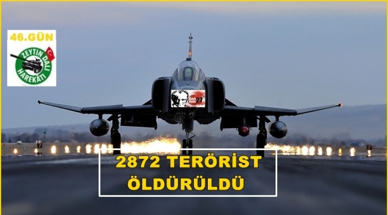 Türk Silahlı Kuvvetleri (TSK) Afrin'de yürütülen Zeytin Dalı Harekatı kapsamında etkisiz hale getirilen terörist sayısının 2 bin 872 olduğunu açıkladı.