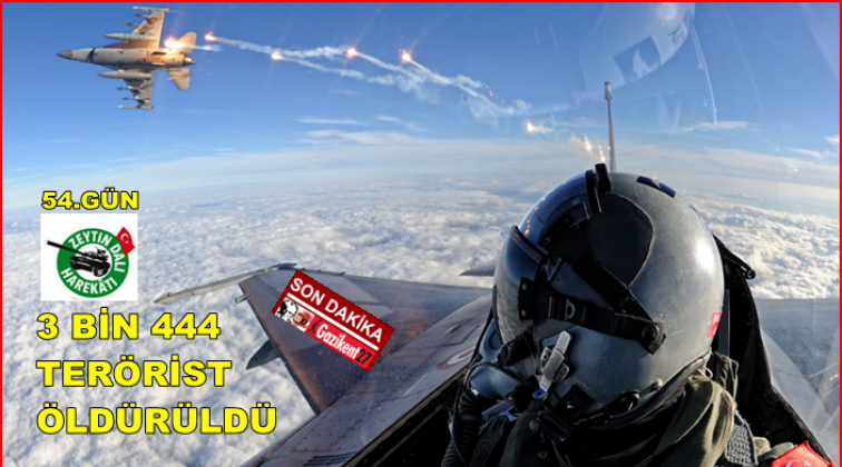 Türk Silahlı Kuvvetleri (TSK) Afrin'de yürütülen Zeytin Dalı Harekâtı'nın 54. gününde etkisiz hale getirilen terörist sayısının 3 bin 444 olduğunu söyledi.